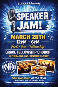 SITMANA SPEAKER JAM March 28th 12-6pm at Grace Fellowship in Hazle Township. Food, Fun And Fellowship. Sign-up link below for food and volunteers.